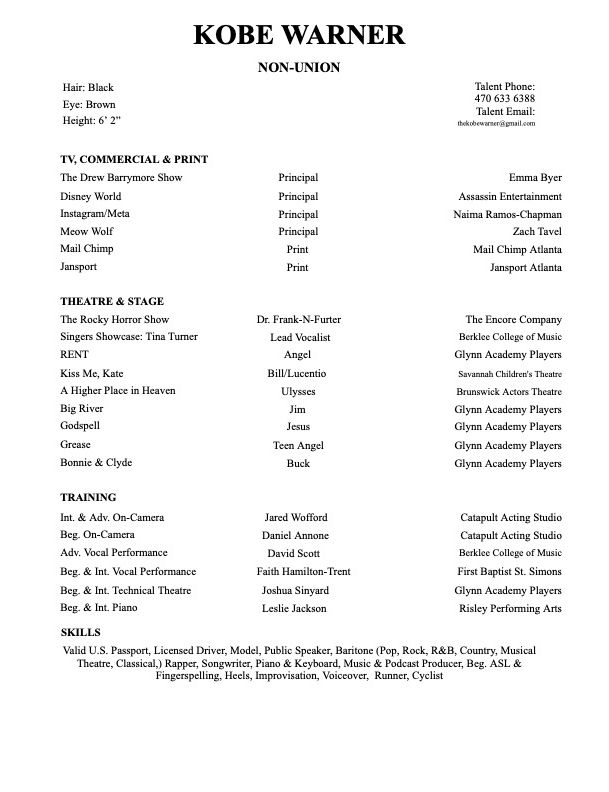Kobe Warner is an American singer, rapper, songwriter, model, actor, podcast host, public speaker & Hereditary Angioedema Advocate. Born in southern Indiana, Kobe moved to Golden Isles, Georgia with their family shortly after their seventh birthday. Almost immediately after arriving on the Georgia coast, Kobe attended a theatre summer camp at the historic Ritz Theatre in Downtown Brunswick, and quickly realized that entertaining on stage is their passion. A theatrical mentor spoke a classic metaphor over Kobe when they were young that stuck with them: the smell of grease paint runs through my veins. Over the next fifteen years, Kobe went on to perform at many regional theatres located in the Golden Isles, in shows such as The Wizard of Oz, Shrek the Musical, The Little Mermaid, The Jungle Book, Kiss Me Kate & A Higher Place in Heaven before moving away in 2020. In 2024, after a few years performing on other stages, Kobe returned to the historic Ritz Theatre to assume the starring role of Dr. Frank-N-Furter in the Rocky Horror Picture Show.